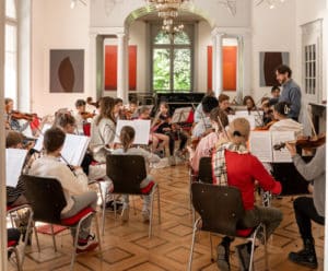 L’orchestre est une expérience fondatrice de la musique en groupe : écoute, polyphonie, fierté de jouer une œuvre commune, justesse, amitié musicale, rôle du.de la chef.fe d’orchestre, les atouts sont innombrables.  Le violon est l’instrument par excellence qui permet très rapidement de vivre cette aventure. Les violonistes en herbe ont l’occasion de le vivre à cinq reprises durant l’année scolaire.